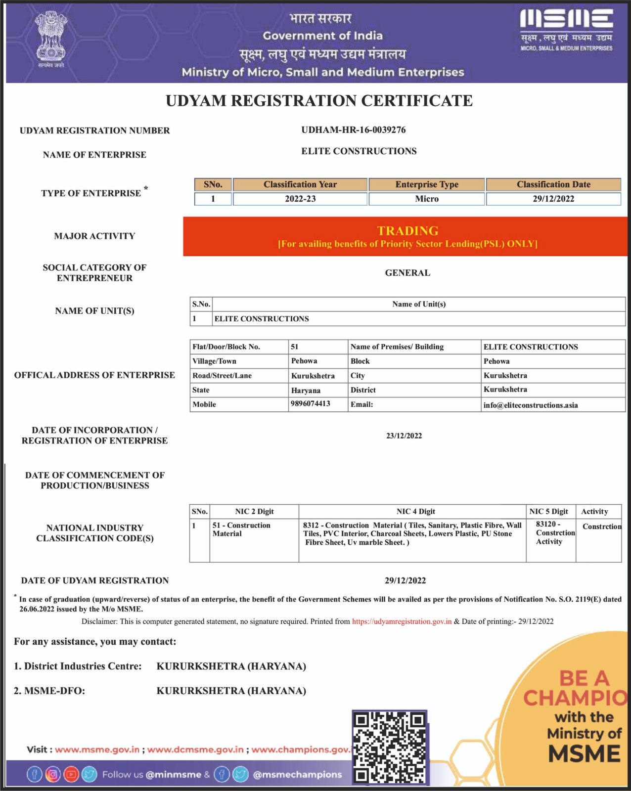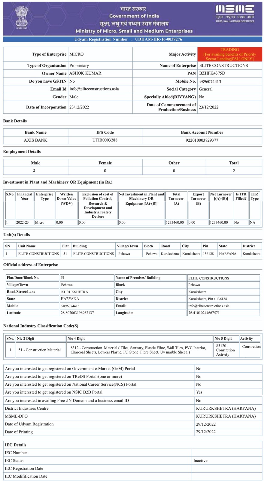 Elite Constructions is a dynamic and growing construction firm headquartered in Pehowa, Kurukshetra, Haryana. Established with a vision to deliver excellence in infrastructure and civil engineering, the company is led by its founder and CEO, Mr. Ashok Kumar, a seasoned professional with an eye for quality and integrity.